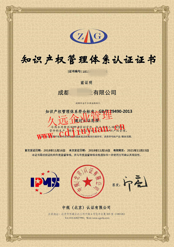 知識產(chǎn)權(quán)管理體系認證證書