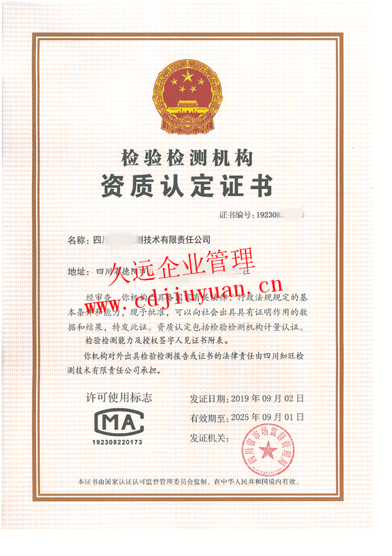 檢驗檢測機構(gòu)資質(zhì)認定證書(CMA)